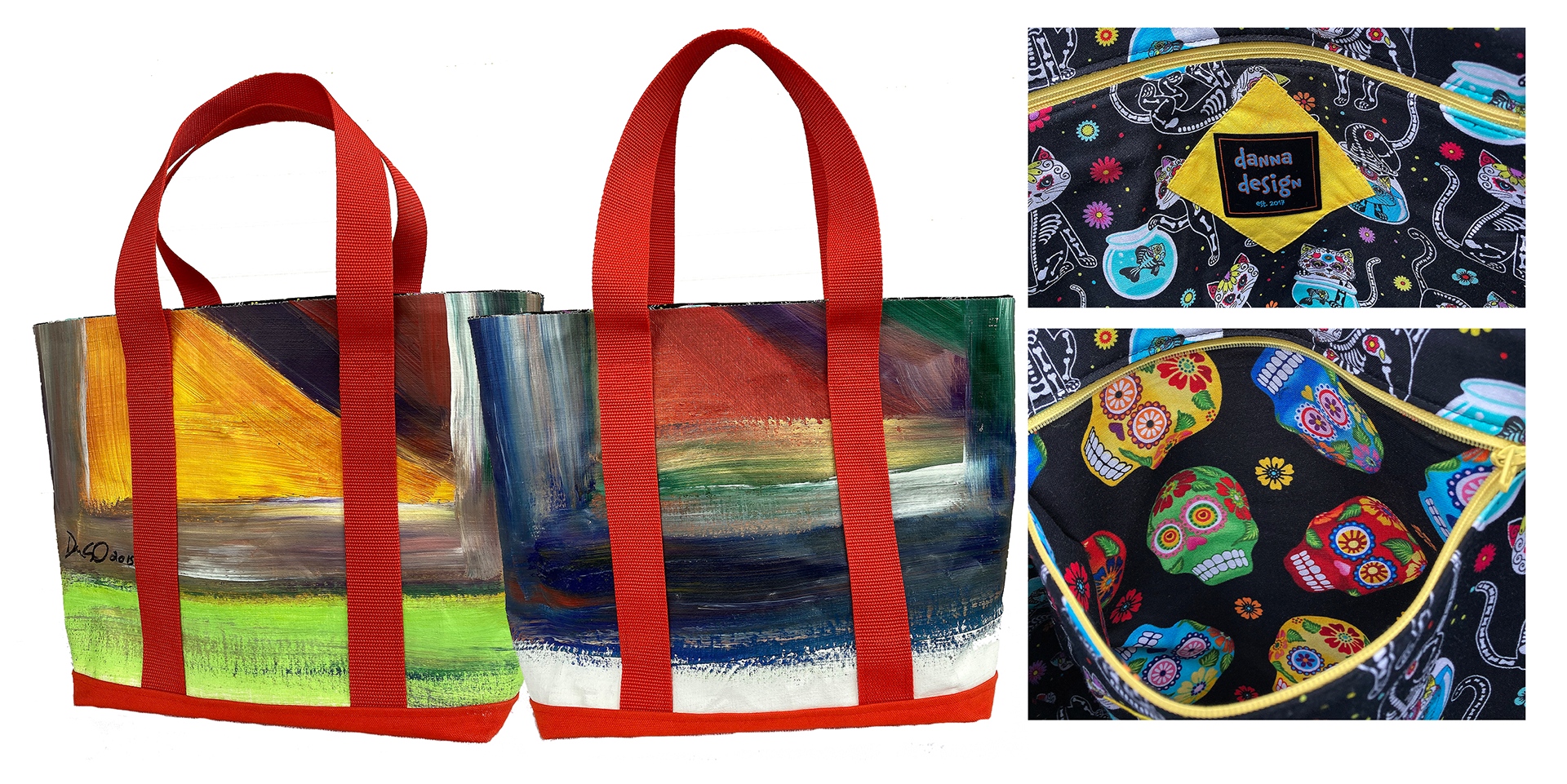 One painting yielded four total bags - See three mini bags below!